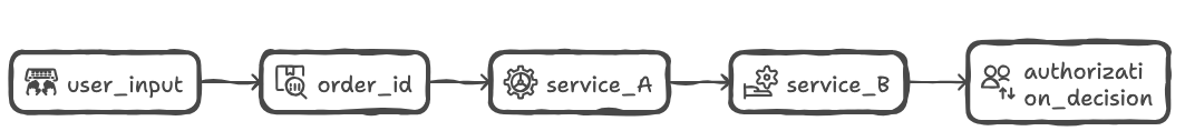 A single identifier may travel through several services before influencing a security decision.